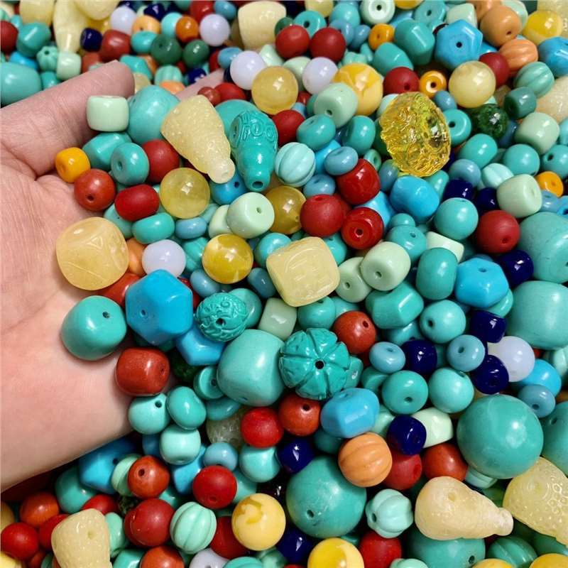 ミツロウの松石のアクセサリーは包みになって、小さい傷のミツロウの緑の松石の文をつかんでアクセサリーを遊んで包装して卸売りを処理します。