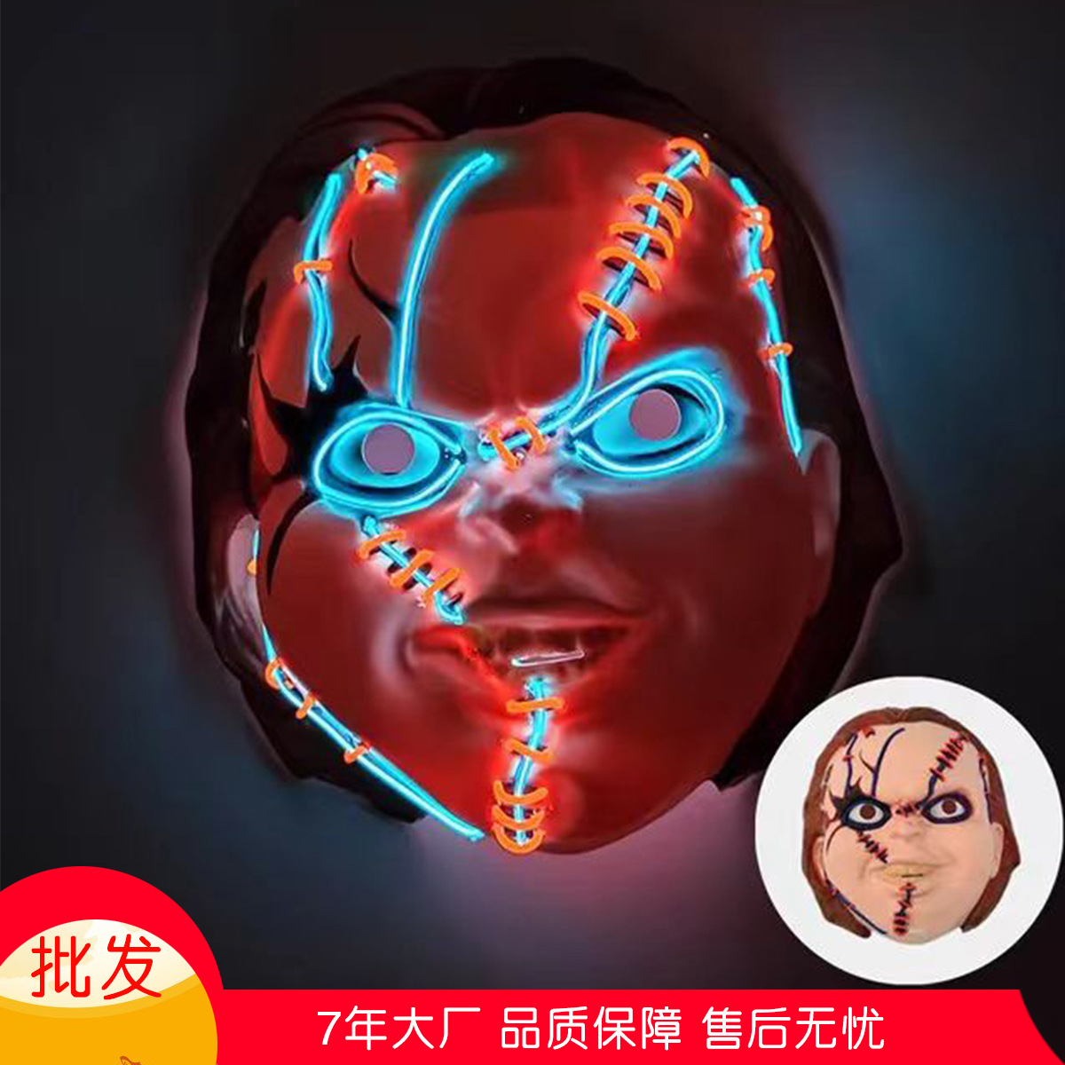 ハロウィーン発光マスク人形鬼マスクled冷光chucky悪霊回魂映画鬼マスク