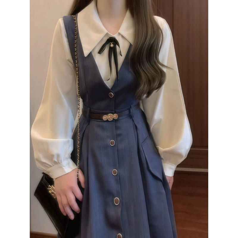 ワンピーススーツ日本のカレッジスタイルサスペンダードレス女子学生多用途ウエスト痩身ミドル丈ベストスカート