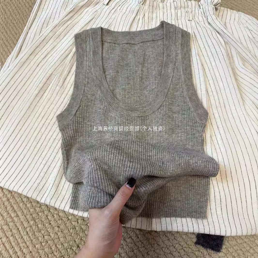 ハイエンドグレーアイスシルク薄いUネックニットベスト女性の夏2025スリムフィットサスペンダーアウタートップイン