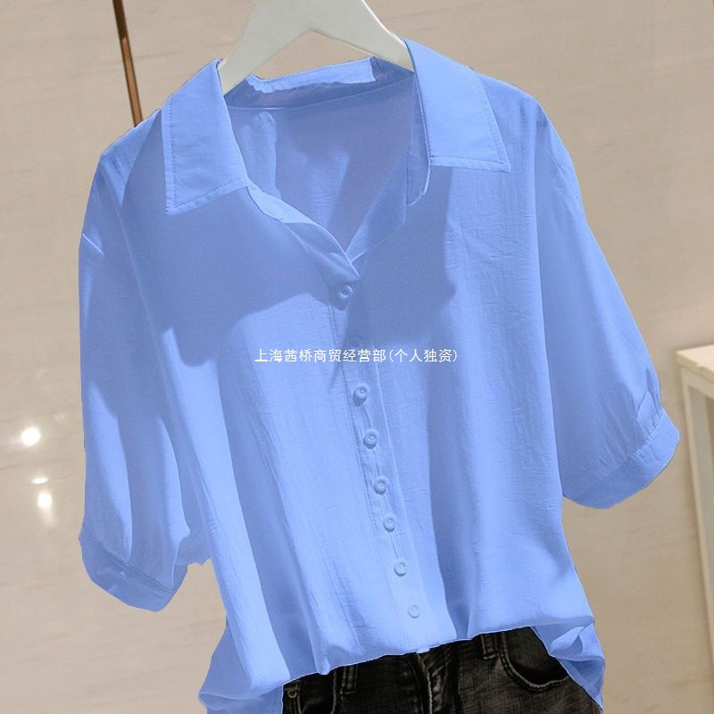 襟付き半袖シャツレディース夏薄手2024新作韓国風ゆったり大きいサイズ痩身デザインニッチトップストレンディ