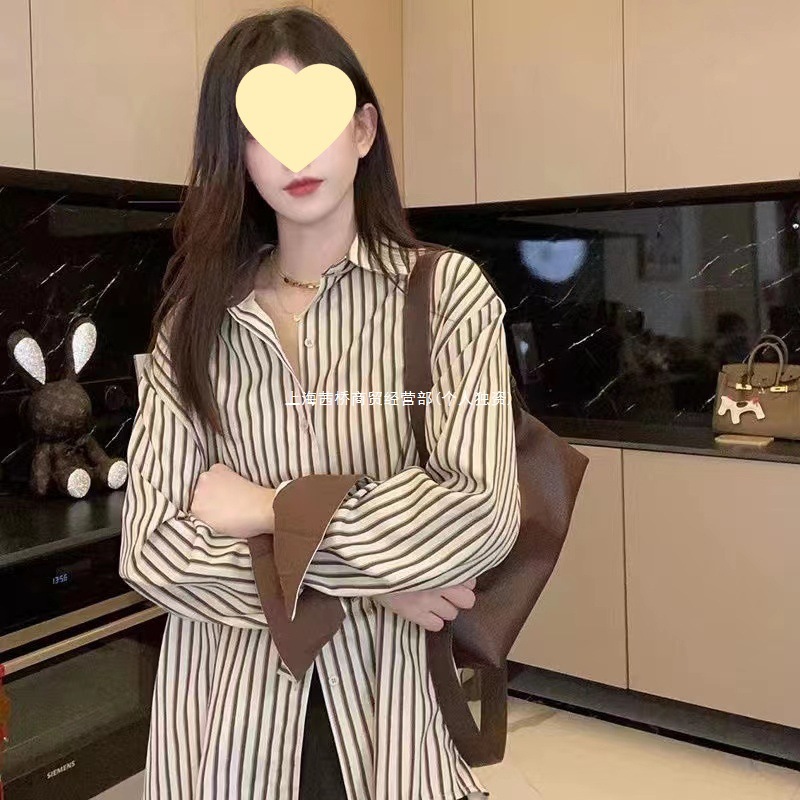 2024 早春韓国スタイルの純綿ストライプシャツ女性の長袖デザインニッチレトロ香港スタイルシャツ女性のコーヒー色