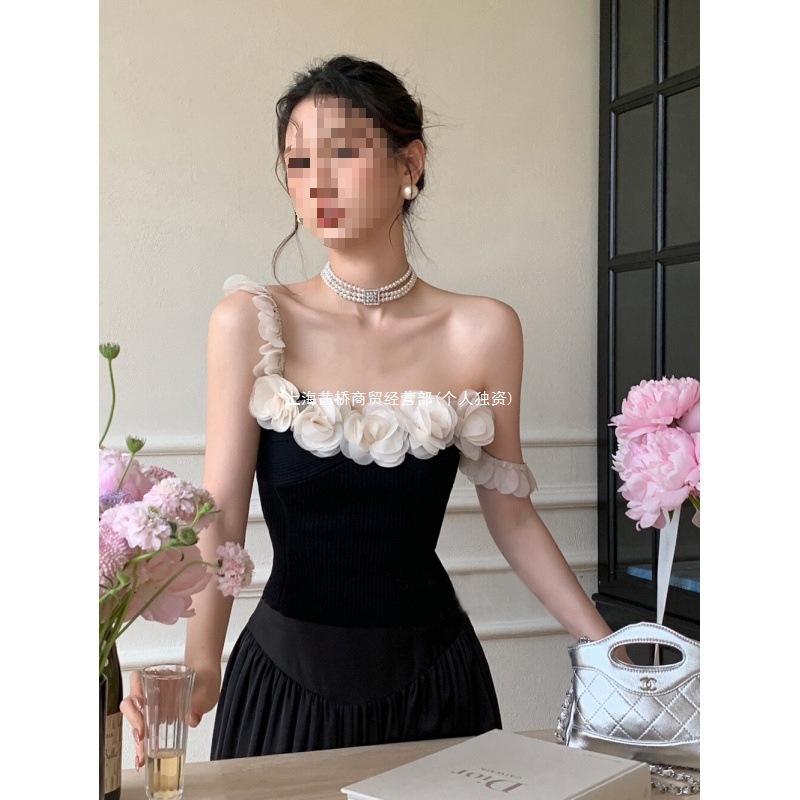 ストアホットセール夏の新しいフレンチスタイルエレガントな純粋な欲望スタイル甘くてスパイシーな花びらサスペンダーニットベストショート