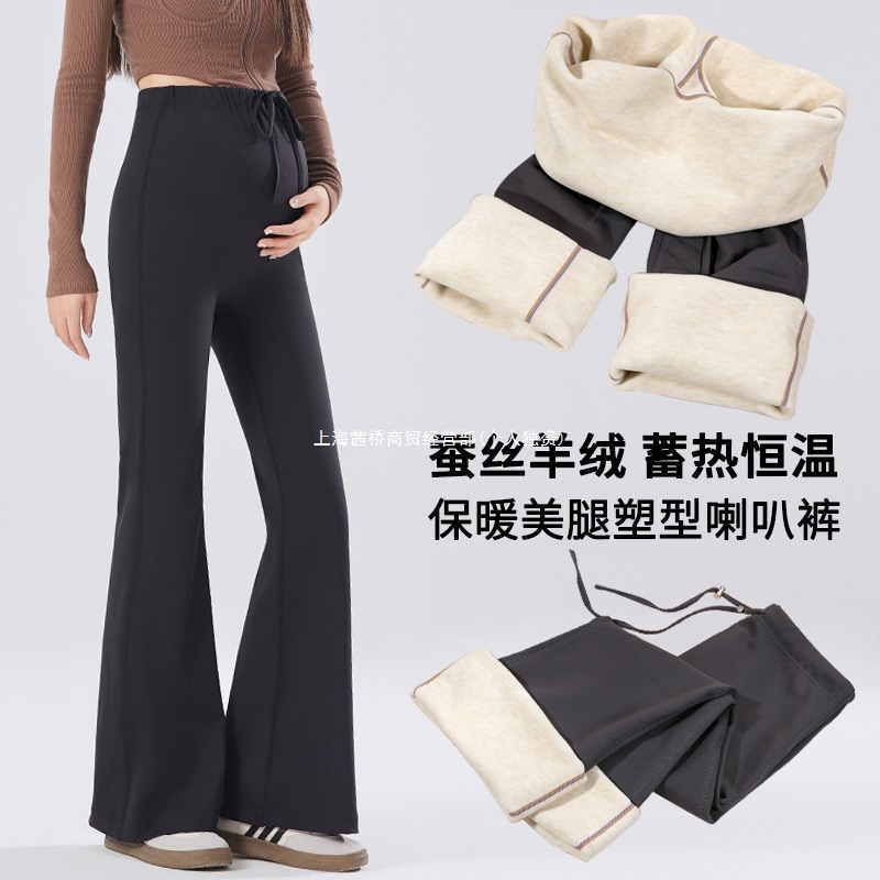 マタニティパンツ、秋冬アウター、お腹サポートシャークパンツ、ゆったりカジュアルベルボトムパンツ、冬服、ベルベット暖かいカジュアルパンツ