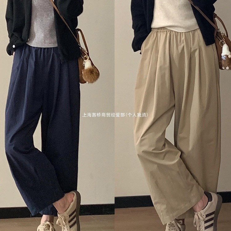 和風レイジースタイル鎌カジュアルパンツ女性用大きいサイズファットmm洋ナシ体型ウエストゴム9点ハーレムおばあちゃんパンツ