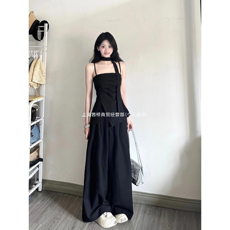 韓国風高級スーツレディース夏ニッチスリットチューブトップキャミソールゆったりドレープワイドレッグパンツ2点セット