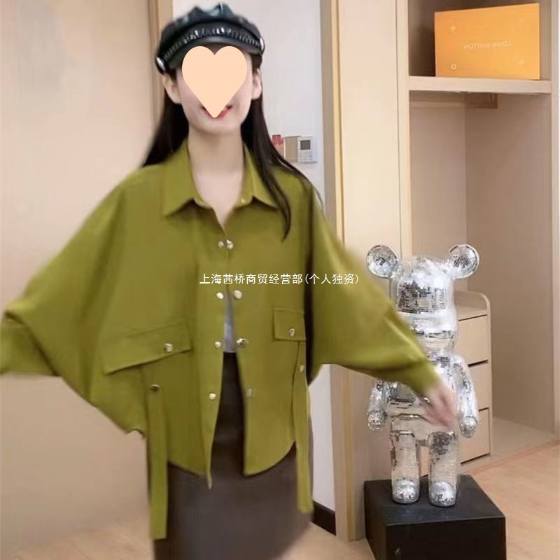 女性用ルーズコート、バットスリーブ、ドレープ、スタイリッシュな春秋の新作小柄シャツ、万能で気質のある体型カバートップ