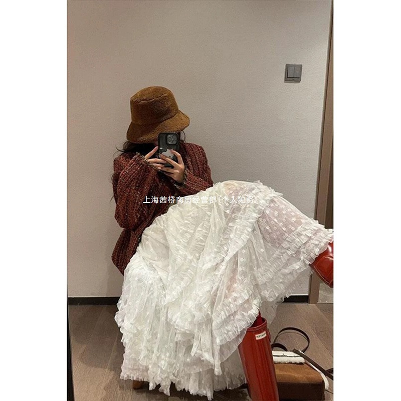 韓国風白いヘビーデューティーステッチ不規則なメッシュスカート女性のための秋と冬のハイエンド多用途ケーキスカート大きな裾スカート