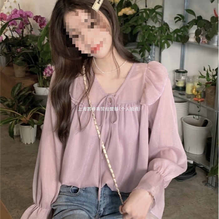フレンチフリルシフォンシャツ薄手レディース2025春スタイルトップデザインニッチ長袖シャツ