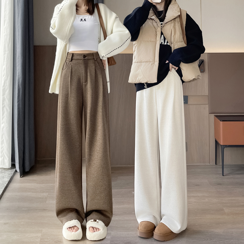 高腰直筒加絨毛ズボンの子供の冬の新型のカジュアルな垂れ下がった感じの狭い版はやせています。