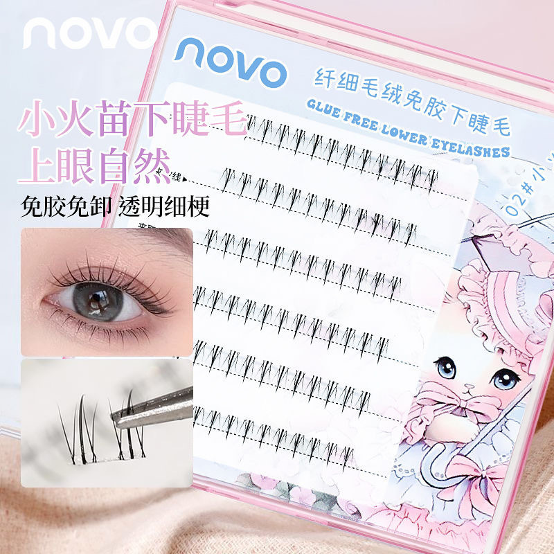 NOVOの小さい炎はゴムの下のまつげを免除して接着剤の自然な単一のクラスターの段階式の漫画の初心者のまつげを必要としません。