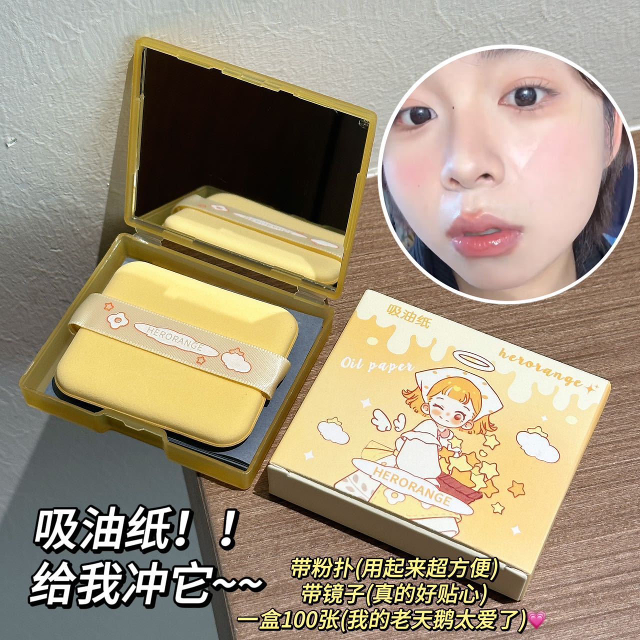 HERORANGE ~ パフ携帯式油取り紙の化粧をします。油の顔に油を拭きます。化粧を吸わないで鏡を持っています。