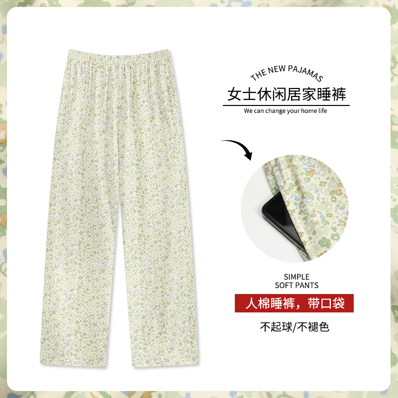 中高年ズボンパジャマ春夏モーダルホームパンツ薄手カジュアルママウェア高齢者花柄パンツ卸売