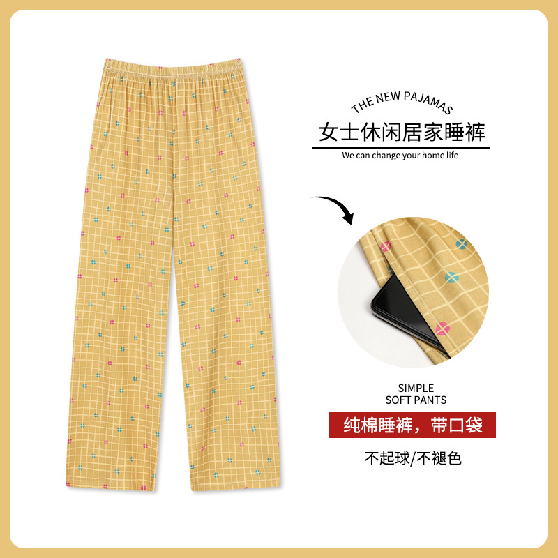 春と秋の女性用純綿パジャマ、カジュアルなルーズプリントパンツ、大きいサイズの女の子用ホームパジャマ