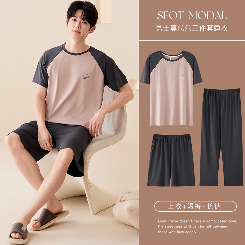 モーダル爽コットン高品质パジャマメンズ高级感半袖ショートパンツアウター可ゆったりカジュアルホームウェアセット