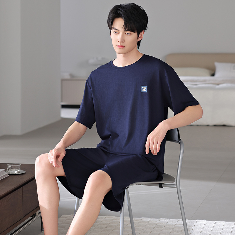 2025 パジャマメンズ夏モーダル綿薄い半袖青中年アイスシルククール夏のホーム服大きいサイズ