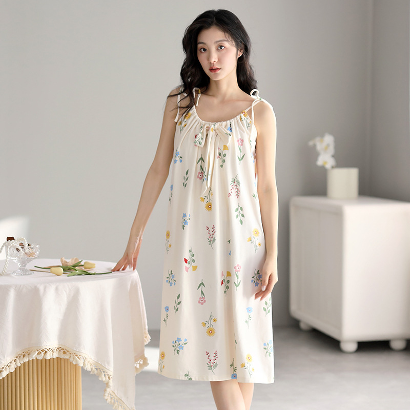 女性の夏のノースリーブストラップセクシーな純色のワンピースの長いタイプの少女の家で寝ます。