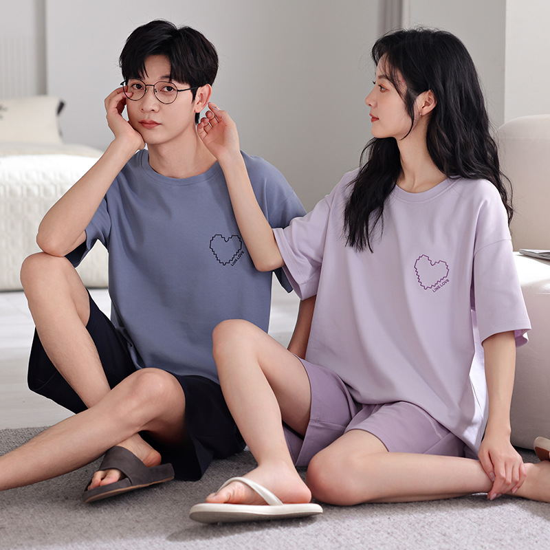夏のカップルのパジャマ綿の丸首の半袖の半ズボンは簡単で大きいサイズで青少年の綿のファッションのパジャマを外に着ることができます。