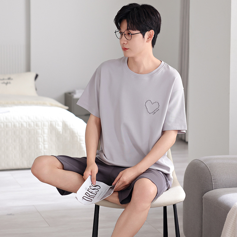 半袖パジャマ男性夏純綿カバーカジュアル大サイズ男性家庭服半ズボンセット