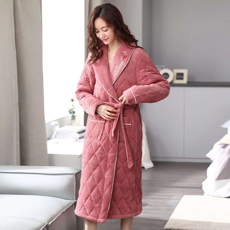 冬パジャマレディース長袖カーディガンコーラルベルベットパジャマ三層厚手ミルクベルベットホテル朝ガウンコットン浴衣