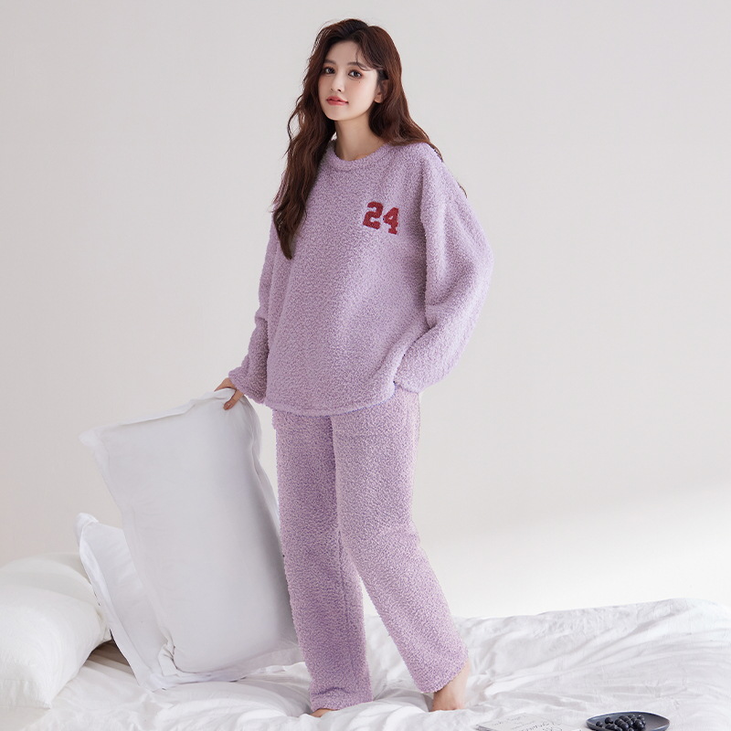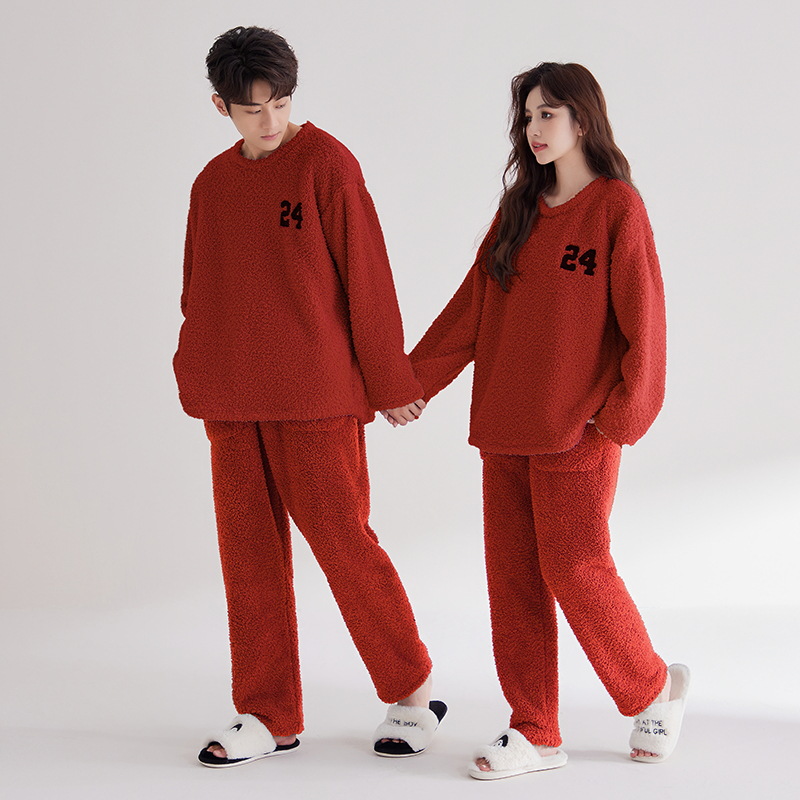 冬のカップルのパジャマ新婚の家の丸襟の半端の毛の保温の長袖の薄い毛のゆったりしている甘い少年感のパジャマ