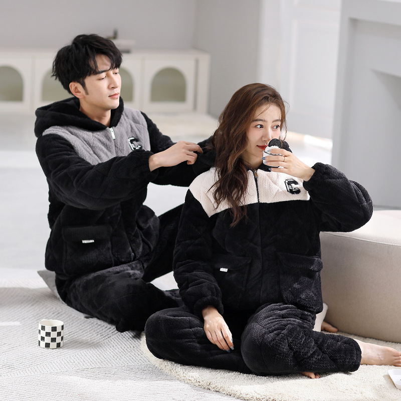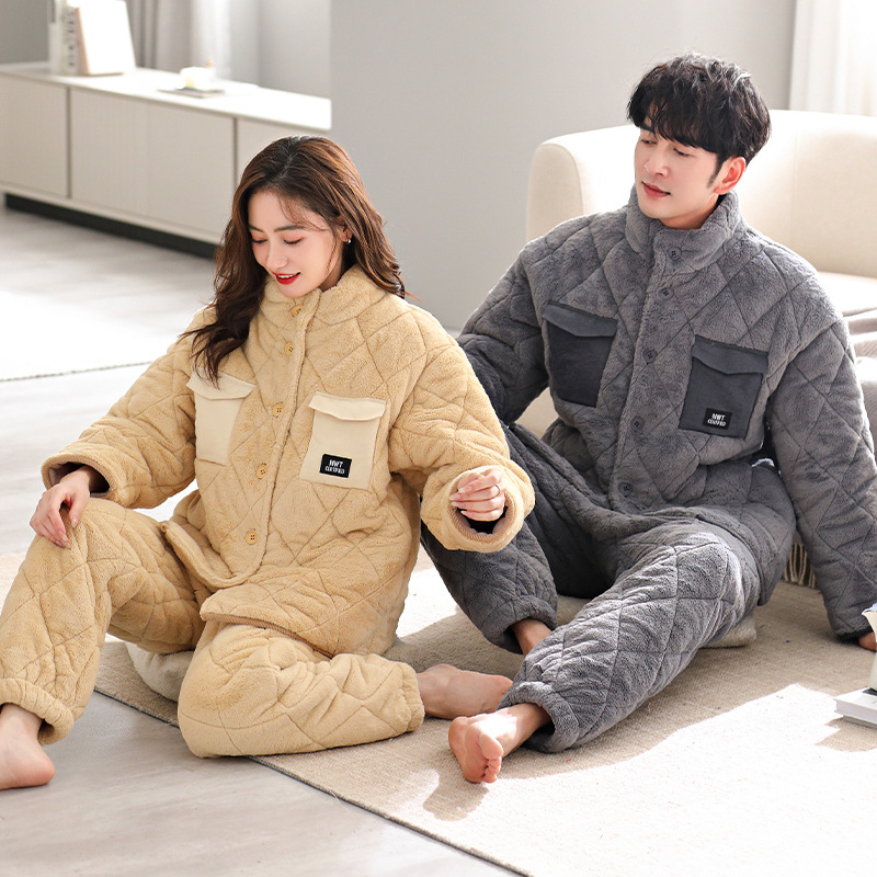 カップルのパジャマ冬のカーディガンのぬいぐるみの三層が厚くて暖かいです。