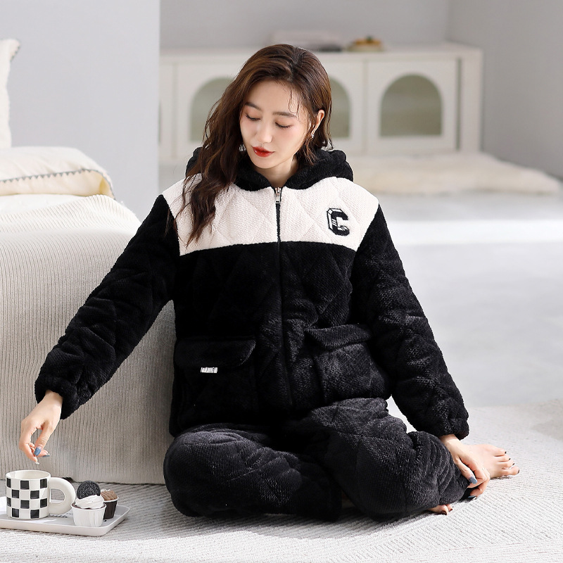 ベルベットパジャマ少女冬長袖フード付きファッションガーディアン風三層保温綿入りホームウェア