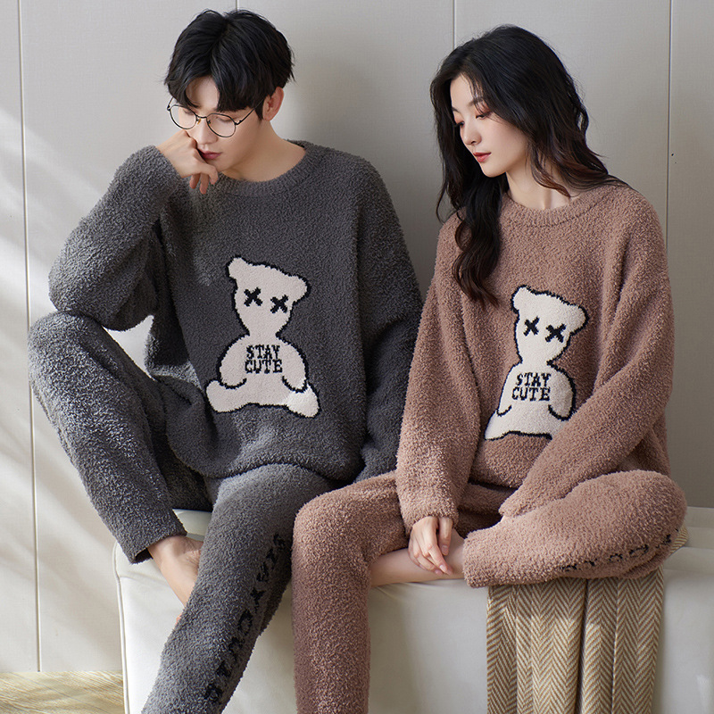 冬のサンゴの絨毯のカップルの寝衣の三階は厚くて暖かいです。