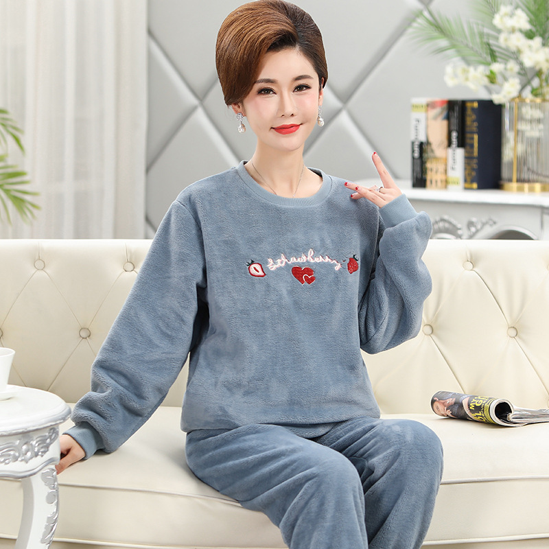 パジャマ女性冬のコーラル長袖丸襟中高年のお母さんの家の頭の大きいサイズの保温はパジャマを着ます。