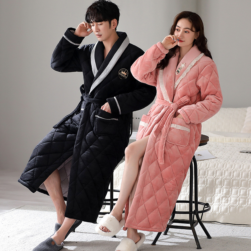 パジャマ男性冬のサンゴのベルベットの寝衣は厚い三層で、長い保温ジャケットの浴衣男性の浴衣を厚くする