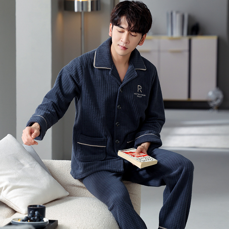 秋冬の男性の寝衣はゆったりしています。三階は厚いです。