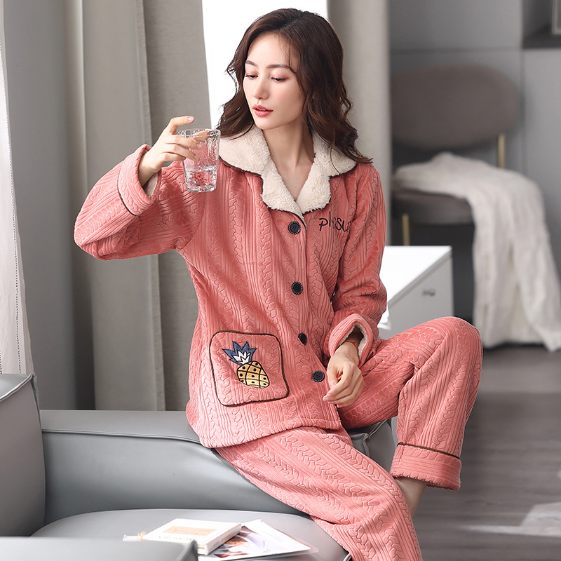 冬の保温パジャマ女性の肌のベルベットの子供の襟の少女の香りの風が厚いサンゴのベルベットの綿の家のパジャマ