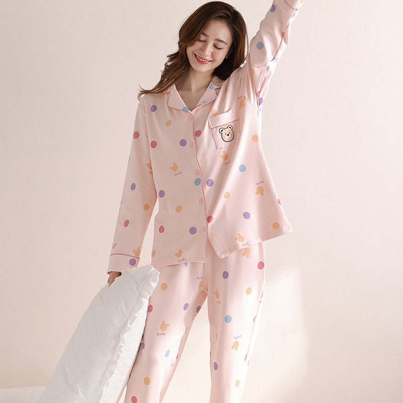 秋冬丸襟パジャマ長袖綿100% 漫画プリントシンプル風少女ホームウェア外着ファッションパジャマ