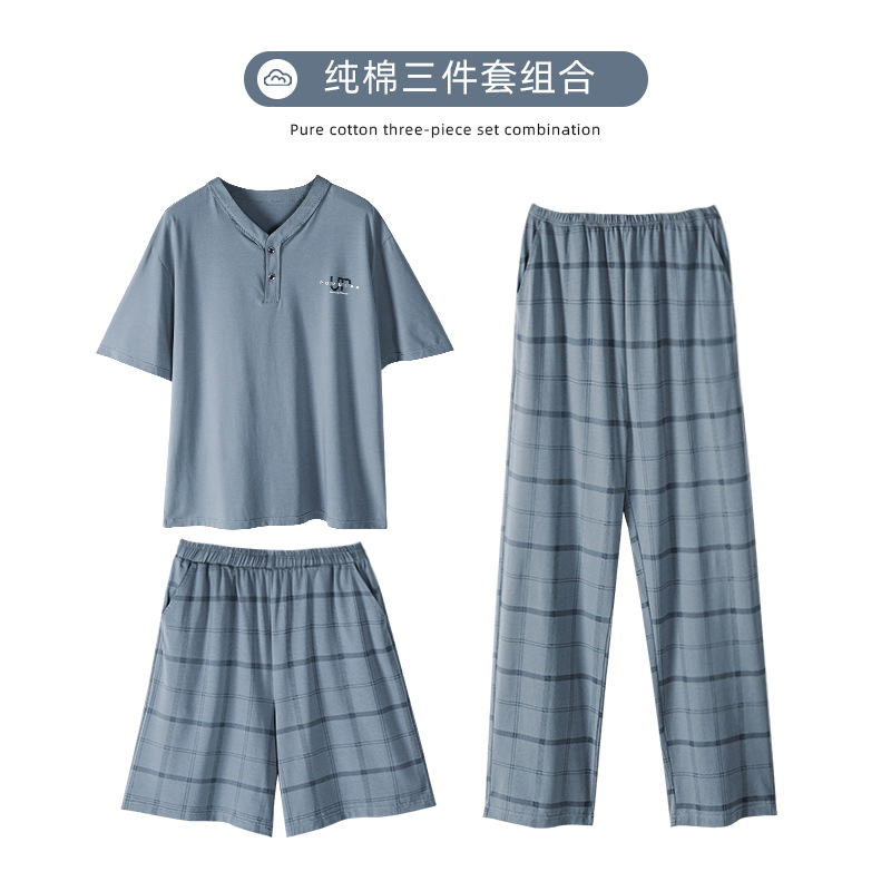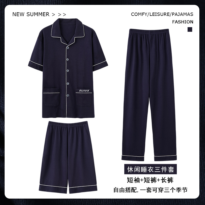 ティ蕾夢春秋パジャマ男性カーディガン快適自由組み合わせプラスサイズ半袖半ズボン三点セットパジャマ