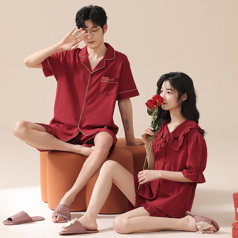 ティレ夢春秋新婚カップル家庭レジャー風半袖快適モーダルビッグカップパジャマセット
