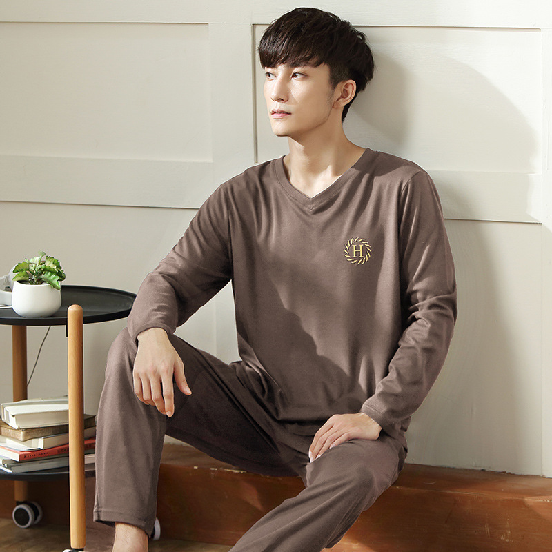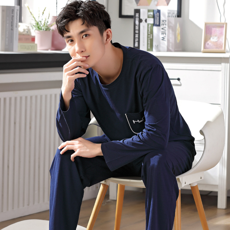 新しい春と秋の現物モーデールの3つのセットは自主的に薄いタイプの簡単な襟の男性の通気性の家のパジャマを組み合わせます。