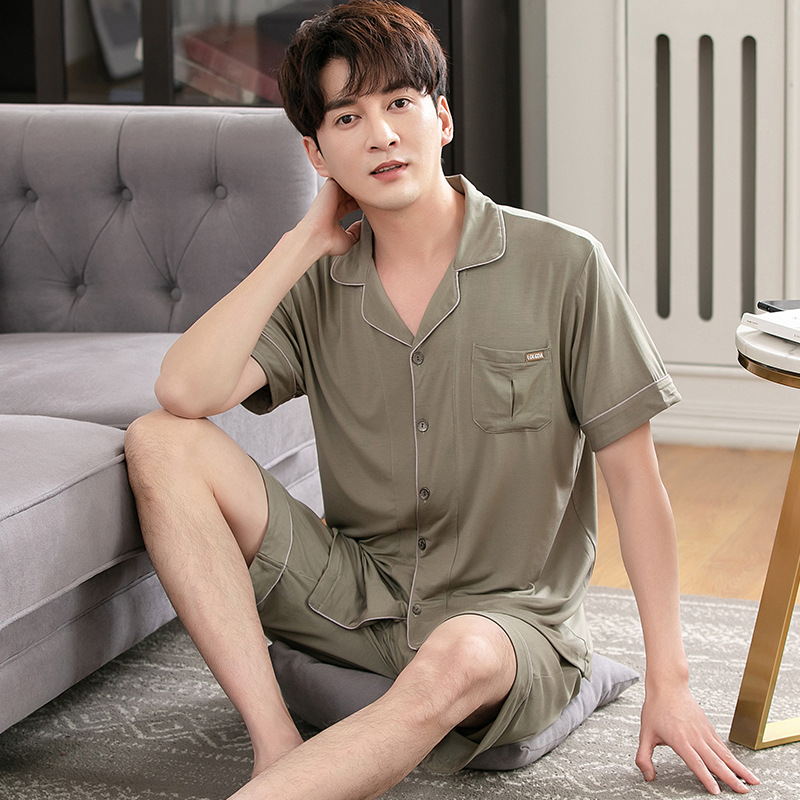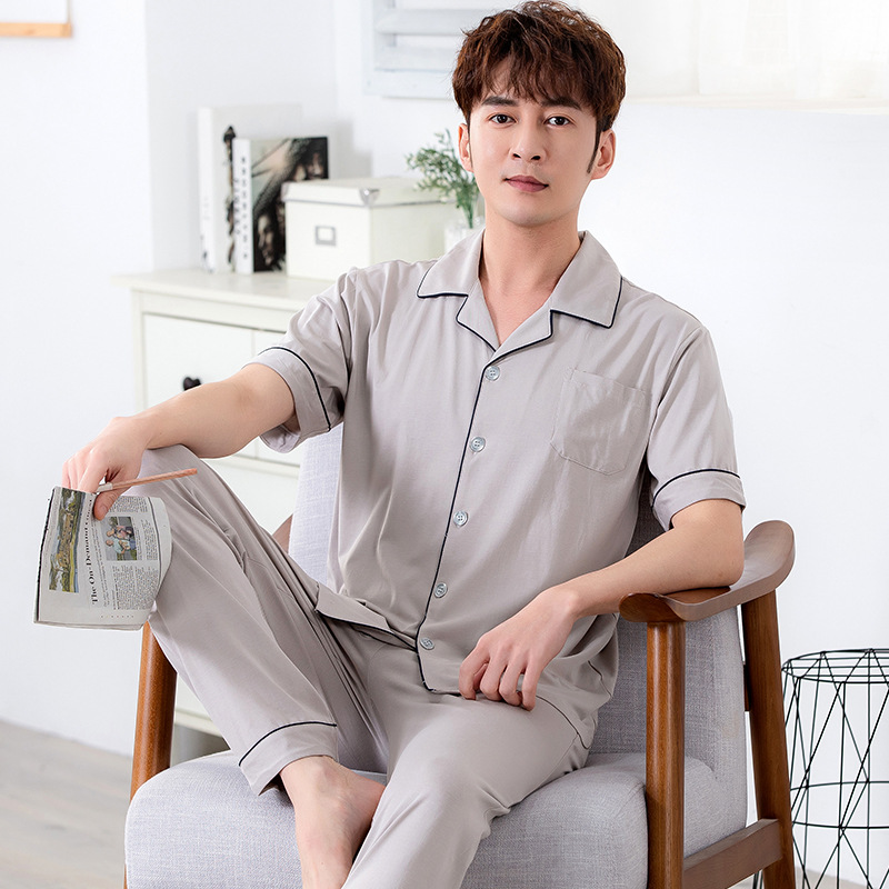 モーダル男性パジャマの薄いタイプのシンプルな個性は、男性の家庭の肌に合わせてパジャマを着ています