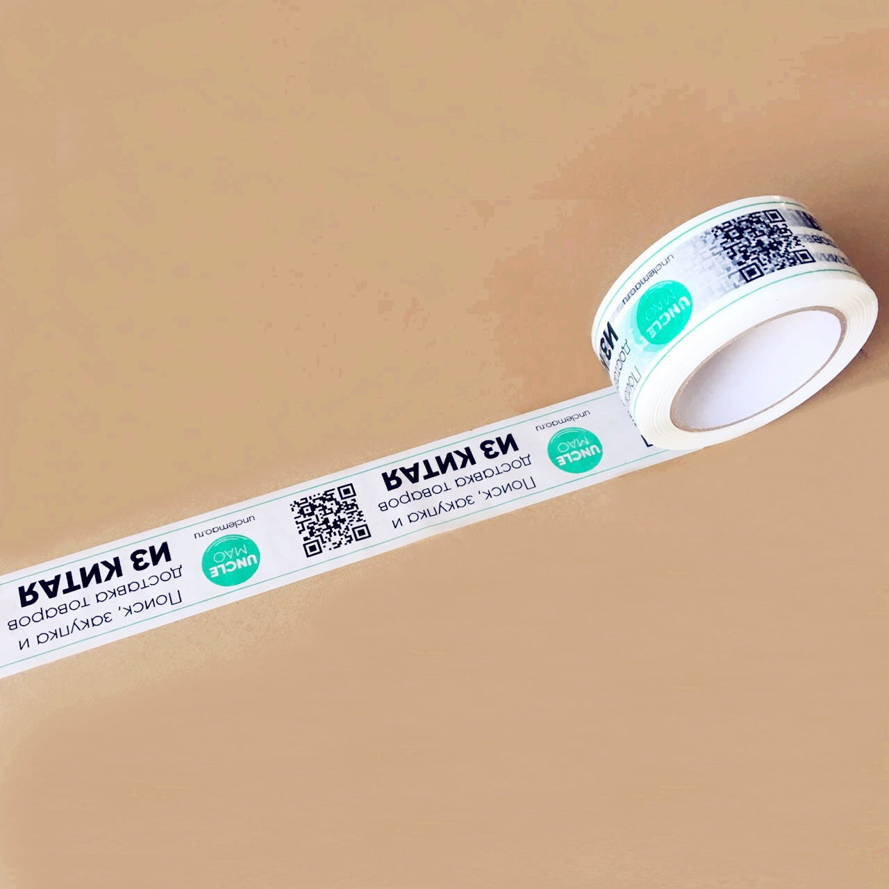 カラー粘着テープ、梱包用テープ、透明テープ、宅配用テープ、ロゴ入り、白地、幅4.8cm、偽造防止、防湿、印刷入り