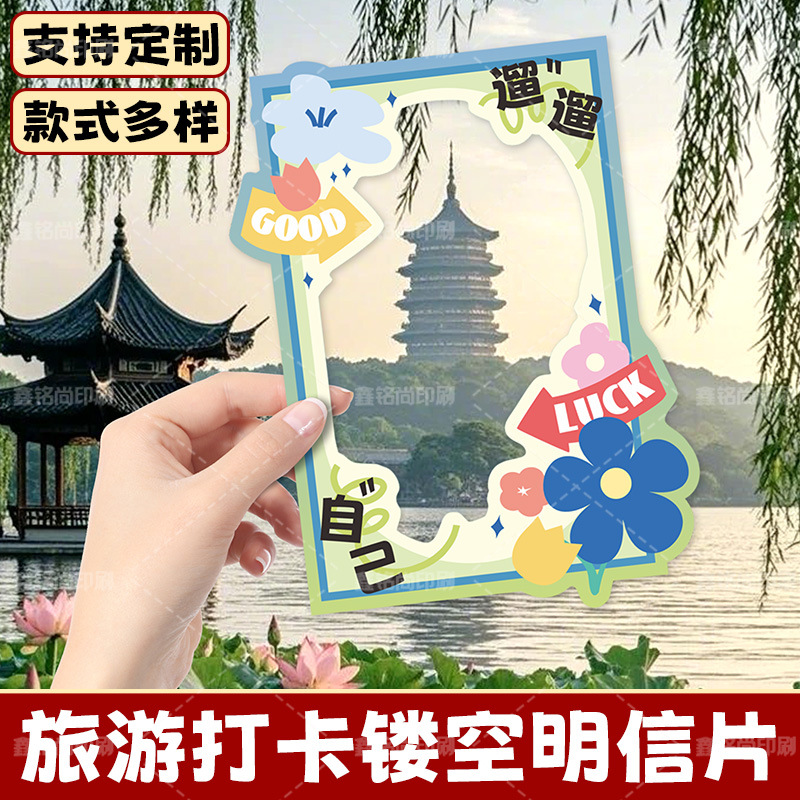 都市観光スポット写真はがきネット赤ランドマークカード透かし彫り異形カード音楽祭は小さなカードを持っている