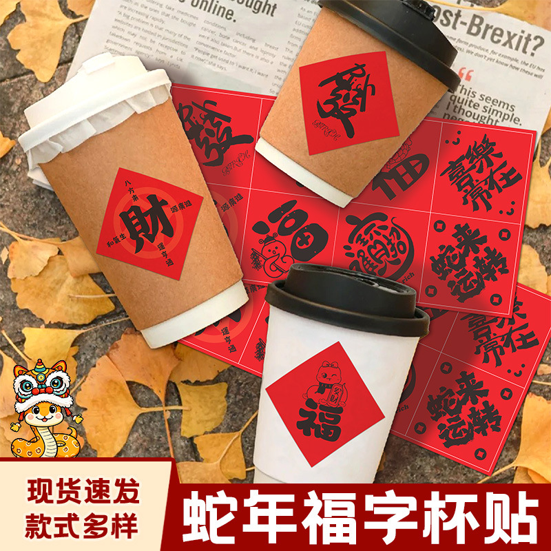新年在庫あり、即発送可能 ミルクティー・コーヒーカップ用「福」字ラベルシール、ギフト用シール、ベーキング用特殊粘着シール