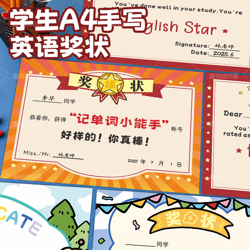 学生 A4 高品質英語賞状手書きクリエイティブ小さな賞状用紙小学生英語トレーニングクラス名誉賞状