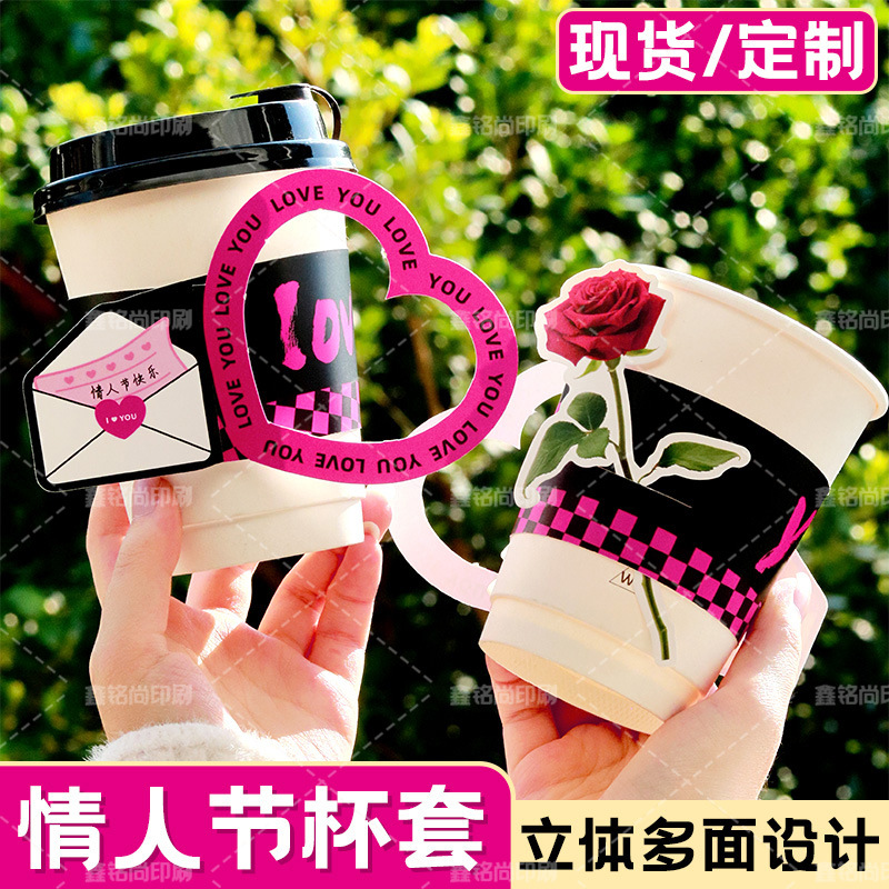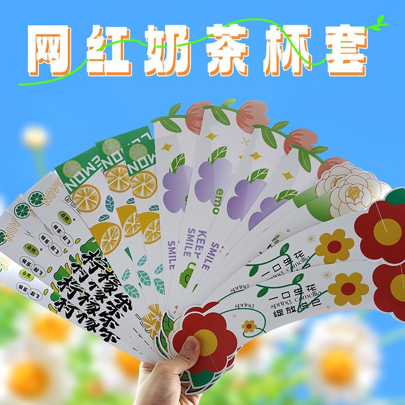 ミルクティーカップセットはネットレッド飲料防水パーマ使い捨てコーヒーカップ断熱保護カバー印刷をカスタマイズした
