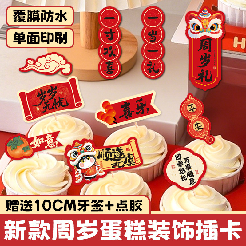 新しい全国トレンドの1歳のデザートつまようじカード、安心の祝福、誕生日ケーキのベーキングデコレーションの小さなプラグイン