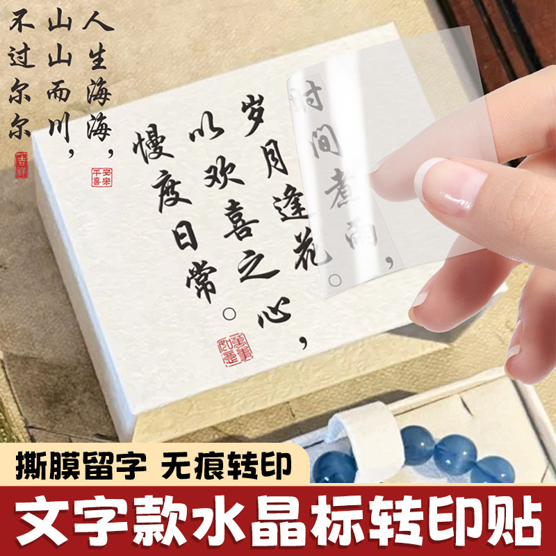 テキストクリスタルラベル転写ステッカー、カスタマイズされたインターネットセレブの覚醒祝福コピーライティング転写ステッカー、中国風書道UV転写ステッカー