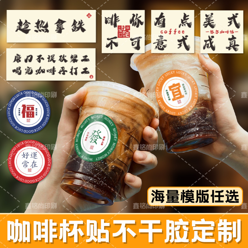 ミルクティーカップステッカーカスタムネットレッドins防水ロゴラベルコーヒーレモンティー使い捨てカップステッカー