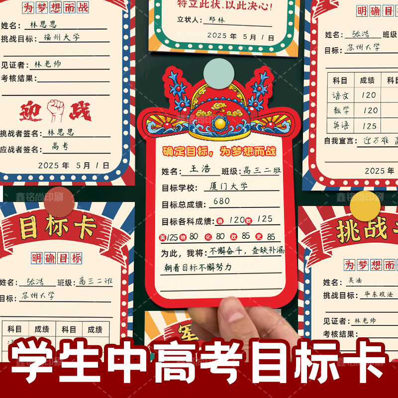中学高校目標チャレンジカードオーダーメード式感手書き中試験大学入試激励学習挑戦書目標カード