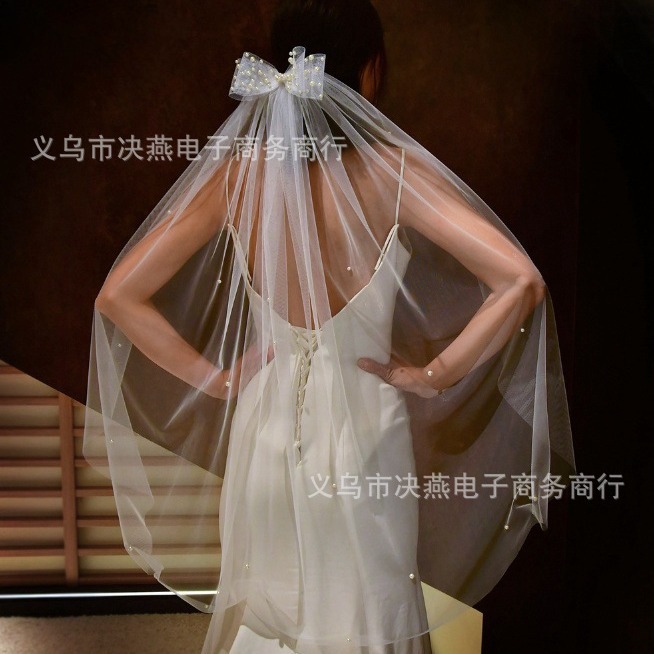 クロスボーダー卸売ミッドレングスのリボンビーズ単層ベールシンプルなハイエンドベール写真小道具卸売