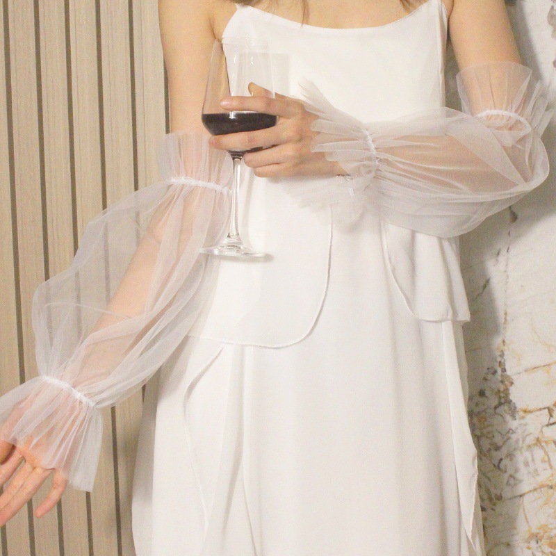花嫁用レースメッシュパール袖、ビーズ刺繍入り日焼け止め、シンプルで高級感のあるウェディングドレスアクセサリー、写真撮影用ガーゼ袖