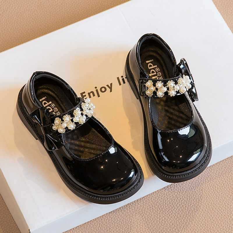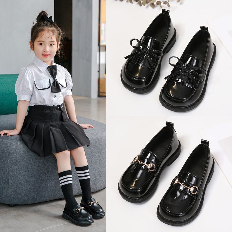 女の子靴夏2025新型子供滑り止めソフト底プリンセス靴中の子供黒英倫風演出靴