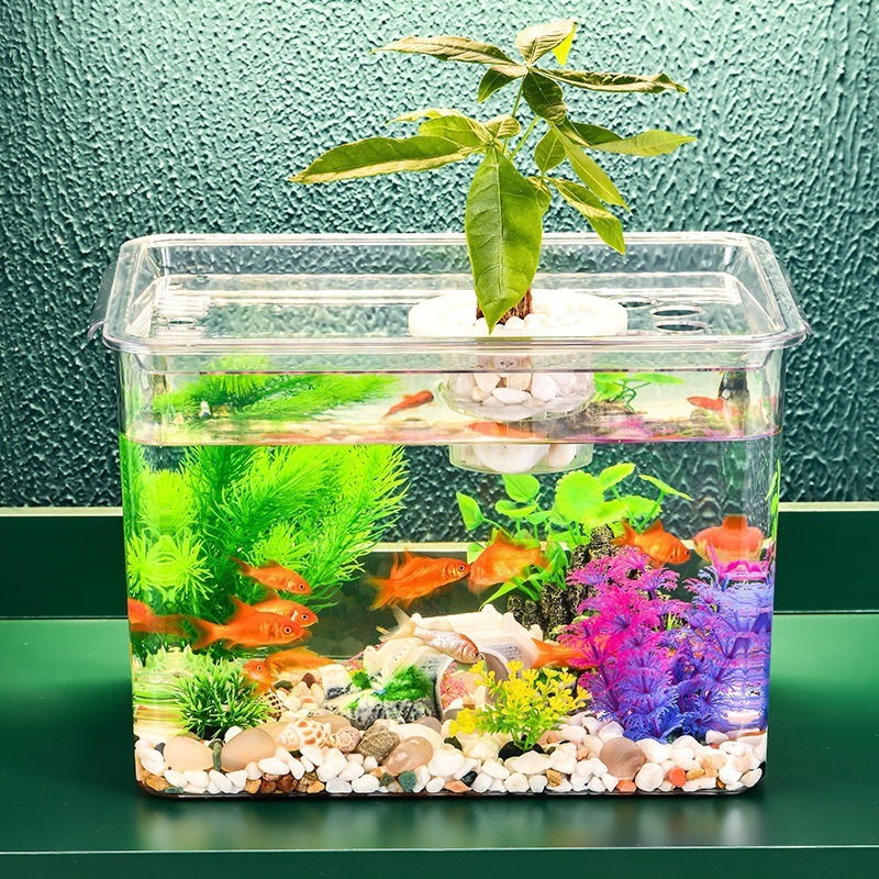 プラスチックハイビジョン透明観賞生態水槽創意円形造景シリンダー一体成型転倒防止水槽